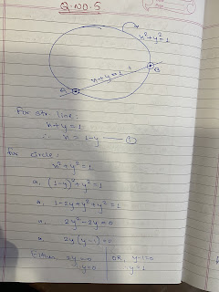 5. 5. If the line x + y = 1 and cuts a circle x2 + y2 = 1 at two points, find the distance between the two points. [2062 R]